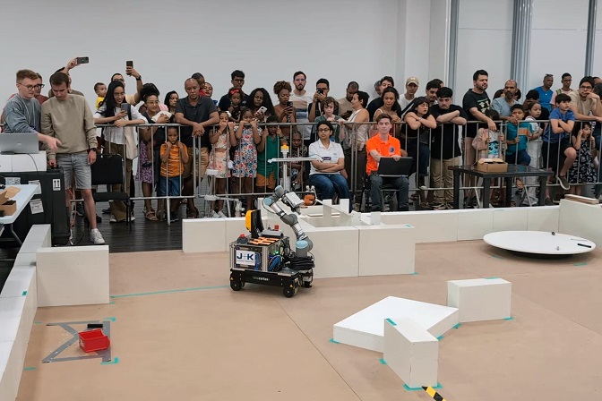 In Brasilien angekommen verpasste das Team trotzdem den ersten Übungstag, da der brasilianische Zoll den Roboter zunächst nicht freigab. „Zum Glück haben wir einen Schweizer aus der Rescue-Liga kennengelernt, der Portugiesisch sprechen konnte und für uns beim lokalen Logistiker angerufen hat. Am Ende kam der Roboter gerade rechtzeitig zum ersten Wettkampftag an – das übliche Testen fiel in diesem Fall weg“, schildert Prof. Dr. Kaupp. „Ohne diese kollegiale Hilfe untereinander würde der RoboCup gar nicht funktionieren.“ Das CERI-Team konnte sich auch gleich revanchieren und leistete technische Unterstützung, als der Roboterarm des Schweizer Teams Probleme hatte.