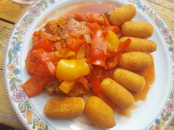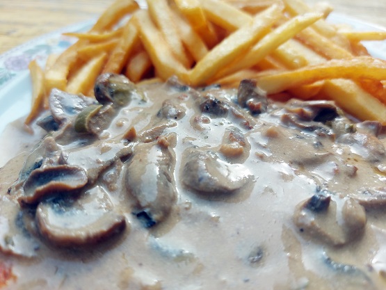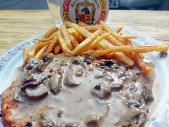 Man mag´s nicht glauben, aber beim jüngsten Besuch haben die beiden Schonunger mal wieder etwas Neues auf der (Tages-)Karte gefunden, was sie zuvor bislang nicht speisten. Na gut, Michael entschied sich mal wieder für das Jägerschnitzel mit Pommes Frites und einem Beilagensalat. Petra wählte das Paprikasteak mit Kroketten und beschloss zu fordern, dass es das nun ab sofort immer geben muss.