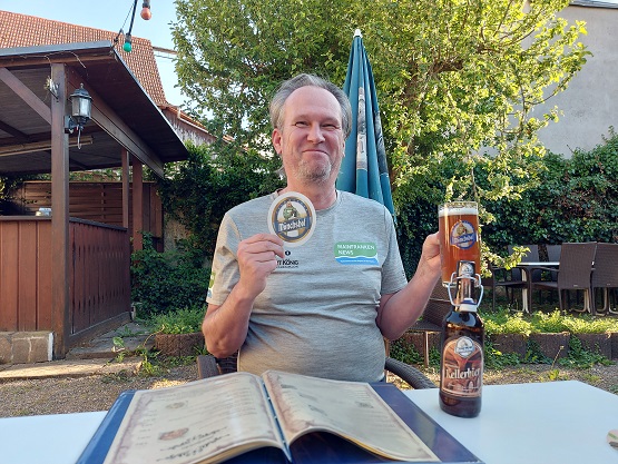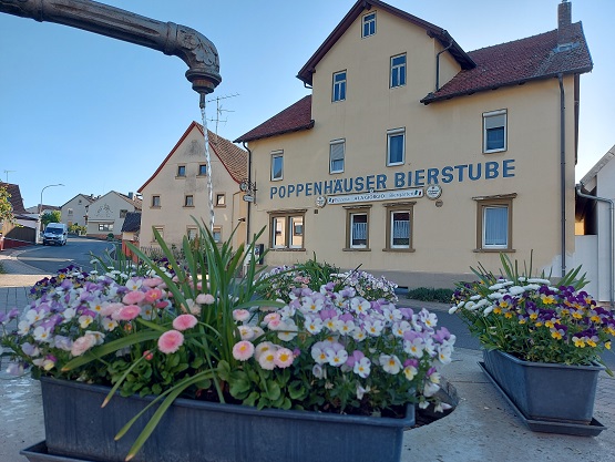 PFÄNDHAUSEN – Poppenhäuser Bierstube steht groß an der Front. Drinnen verbirgt sich die Pizzeria A La Giorgio – und hinter dem Haus einer der schönsten Biergärten der Region. Finden zumindest mainfranken.news-Vielschreiber Michael Horling und seine alles fotografierende Partnerin Petra Moritz