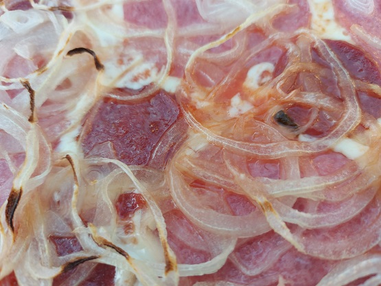 Diesmal fiel die Wahl zu ein paar süffigen Kellerbieren aus dem Hause Kulmbach auf eine Emiliana und eine Calabrese. Halb-Halb geteilt, so dass jeder versuchen konnte. Die Emiliana bietet zur Hackfleischsoße auch Peperoniwurst, die Calabrese ist auch mit Salami und vielen Zwiebeln belegt.
