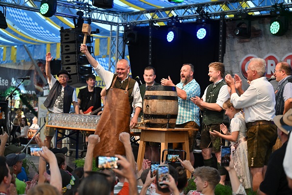 Mit drei festen Schlägen zapfte Marktheidenfelds Erster Bürgermeister Thomas Stamm im Festzelt das Holzfass für die erste Maß Bier an.
