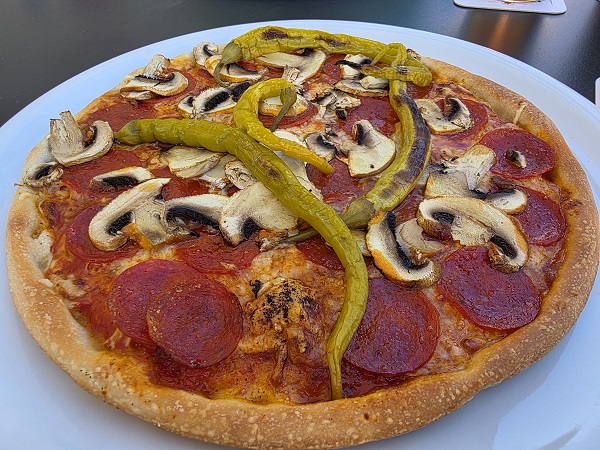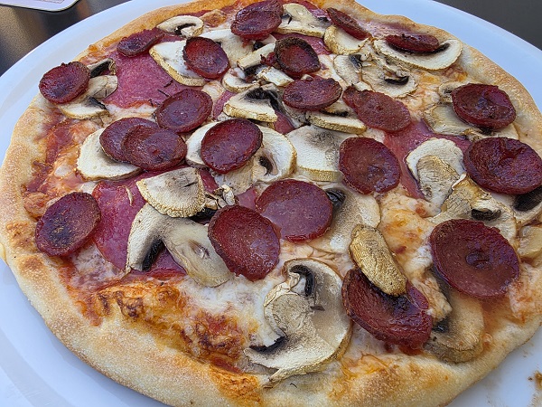 Es gab – natürlich – Pizza. Petra entschied sich für die etwas schärfere Diavolo, Michael nahm mal wieder ganz klassisch die Mary. Unsere Bilder dürften beweisen, dass sich der Besuch lohnte.