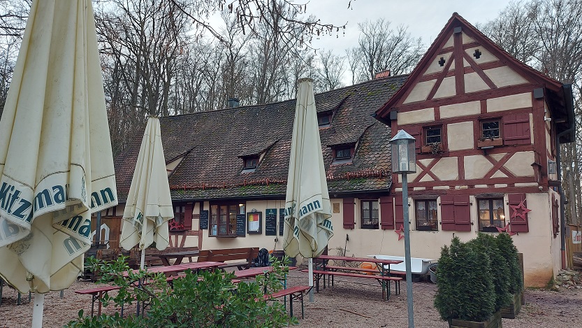 Michaels Tageshöhepunkt war damit abgedeckt, der für Petra (namensbedingt) sollte noch folgen. Der Moritzberg in südöstlicher Richtung ist eine der markantesten Erhebungen im Nürnberger Land und zumindest für die Unterfranken maximal ein Geheimtipp. Knapp über 600 Meter hoch führt eine Fahrstraße nicht ganz auf den Gipfel, kann man von mehreren Seiten anch oben laufen. Der Weiler Moritzberg auf dem Gipfelplateau bietet die St. Mauritius-Kapelle und den Moritzbergturm – und dazu ein romantisches Ausflugslokal mit Biergarten. Kann man alles mal besuchen.