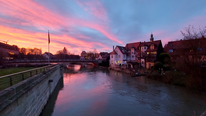 Die nächste und auch letzte Station (weil der Brauerei-Gasthof Wiethaler in Neunhof bei Lauf trotz Ankündigung einer Öffnung überraschend geschlossen hatte… und das Historisches Gasthaus zum Rockenbrunn ohnehin): Lauf an der Pegnitz selbst, wo die Wenzelburg auf einer Insel absolut sehenswert ist, genauso die Altstadt zwischen Nürnberger und Hersbrucker Tor. Durch die gerade unter gehende Sonne ergaben sich ganz besondere Fotos.