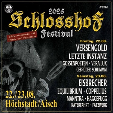 HÖCHSTADT AN DER AISCH – Am 22. und 23. August wird das historische Ambiente des Schlosshofs erneut zur Kulisse für eines der stimmungsvollsten Mittelalter-Rock-Festivals Deutschlands: Das Schlosshof Festival geht in seine mittlerweile 18. Runde und verspricht auch in diesem Jahr ein hochkarätiges Line-up, ein buntes Markttreiben und jede Menge Gänsehautmomente.