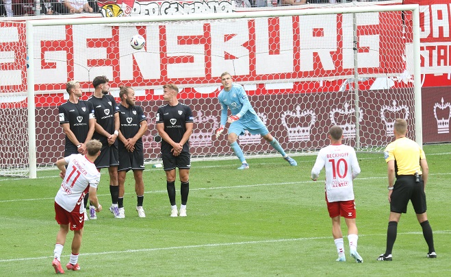 Und nun? „Wir haben wieder viel richtig gemacht. Klar brennen wir kein Feuerwerk ab. Aber wann man bis zum 1:0 keinen Torschuss des Gegners zulässt, dann fühlt sich ein 0:3 hinten raus sehr enttäuschend an“, gibt Meißner zu. „Für Außenstehende ist klar: Wir haben null Punkte und sind aus dem Pokal raus. Aber wenn wir nicht daran glauben würden, bräuchten wir nicht weiter Fußball spielen.“ Natürlich müsse man als Aufsteiger „90 Minuten um´s Leben rennen“. Was in Regensburg letztlich nicht der Fall war. „Und nun müssen wir schauen, dass dies nicht mehr der Fall sein wird.“