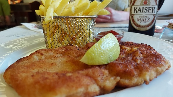 Zu ein paar Kaiserbieren aus der Flasche gab´s klassisch einmal das Schnitzel Wiener Art und einmal die Käsespätzle mit Röstzwiebeln. Jeweils mit Salat vom Buffet. Der Spaziergang zurück ins Quartier wurde zum idealen Abschluss des Anreisetags mit Blick auf Gimpel oder Rote Flüh, zwei der Paradeberge. Bei einem Stündchen Fernsehen wuchs die Vorfreunde auf das, was noch kommen wollte, weiter.