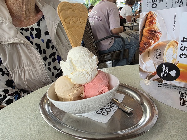 SCHWEINFURT – Ausnahmsweise war mainfranken.news-Vielschreiber Michael Horling diesmal nicht an Bord, als seine alles fotografierende Partnerin Petra Moritz mit seiner Mutter Ursula und seiner Tante Else ein Eiscafé besuchte.