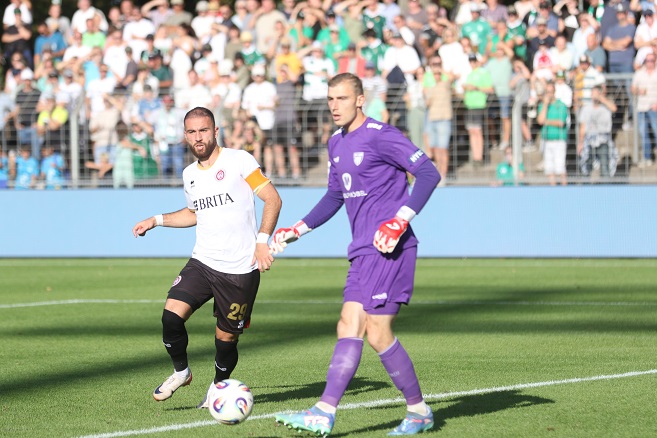 „Es soll einfach nicht sein. Wir bekommen einen Rückschlag nach dem anderen…“, haderte mit Lauris Bausenwein das aus dem benachbarten Oberwerrn stammende Eigengewächs, das auf dem Flügel wieder Spaß machte. Über seine Seite fiel zwar in der Nachspielzeit das entscheidende 0:1. Das Foul am 20-Jährigen gleich danach eröffnete freilich die große Gelegenheit zur Befreiung, die Wintzheimer leichtfertig vergab. Freilich gegen Florian Stritzel, der am Mittwoch einen Elfmeter sogar von Harry Kane antschärfte. Als „weltklasse“ bezeichnet sein Coach Nils Döring den Keeper. Warum spielt der eigentlich „nur“ in der 3. Liga?