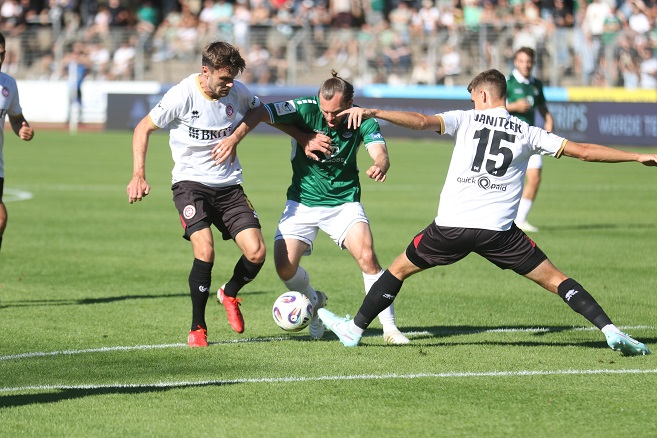 Erst geht´s nach Ingolstadt, überraschend auf einem Abstiegsplatz und mit drei Punkten genauso schlecht gestartet wie Tobias Strobls SC Verl auf dem rettenden Ufer. Bedeutet: Platz der Knoten, dann sind die Schweinfurter schnell wieder im Geschäft. Platzt er nicht, dann schwant Übles. Denn danach kommt unter der Woche Tabellenführer MSV Duisburg, drei Tage später geht´s zu aufstiegswilligen Saarbrückenern. Immerhin dürfte der Gästeblock am 16. September wieder prall voll sein.