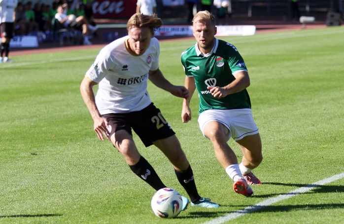 Wintzheimers Fehlschuss in der 96. Minute hat Folgen. Die Schweinfurter sind weiter punkt- und sogar torloses Schlusslicht in der 3. Liga. Vier von 38 Partien sind zwar erst vorbei, aber bei den Fans kommen so langsam Zweifel auf. Wenn selbst bei einem so guten Auftritt wie diesmal gegen Wehener, die vier Tage zuvor die Münchner Bayern massiv ärgerten, rein gar nichts Zählbares heraus springt… „Aktuell kommt extrem viel zusammen. Aber wir lassen uns nicht unterkriegen. Die letzten fünf Minuten auf diesem Sportplatz waren extrem surreal“, bemühte Trainer Victor Kleinhenz gleich zwei Mal dieses Wort. Und ja, diese Partie war extrem: Spannend, aufregend, ärgerlich. Vielleicht auch wegweisend?