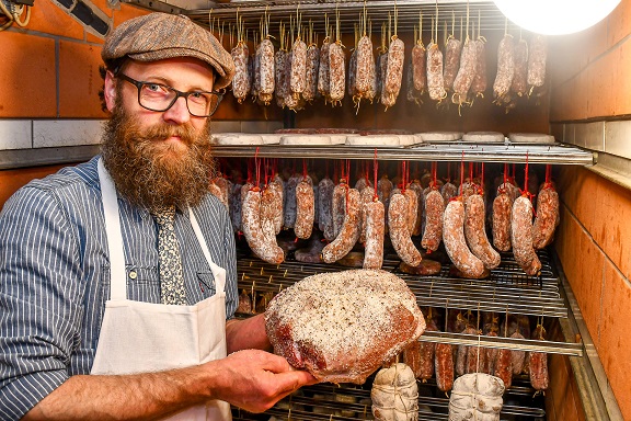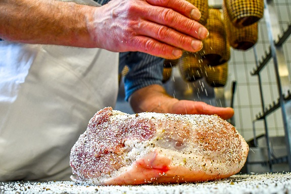 Im Mittelpunkt des Angebots steht der Rhöner Biosphärenschinken, ein Aushängeschild der regionalen Genusskultur. Er wird von Rhöner Metzgerbetrieben in traditioneller Handarbeit hergestellt. Echtes Handwerk aus dem Biosphärenreservat. Die Wertschöpfung erfolgt dabei nur in der Rhön, vom Futtermittel der Schweine bis zur Würzung und Reifung des Schinken.