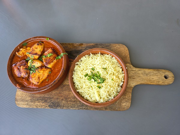 Und daher entschied sich Petra für das Tershek, angebratene Hähnchenbrust mit Tomaten, Paprika, Zwiebeln, Knoblauch und Peterslie in einer Tomaten-Sahnesoße mit orientalischem Reis. Lecker.