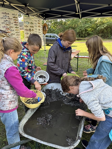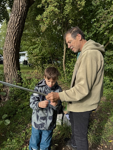Danach ist es an die Stationen gegangen. Beim Werfen mit der Angel haben die Kinder Technik und Geduld geübt – und man hat richtig gesehen, wie schnell die Würfe besser geworden sind. Im Pavillon haben sie spannende Einblicke in die Unterwasserwelt bekommen: kleine Insektenlarven, Schnecken, Muscheln – und als Highlight sogar ein Flusskrebs.