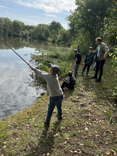 Natürlich durfte auch das Angeln selbst nicht fehlen. Die Kinder haben die Angelrute in die Hand genommen, konzentriert den Schwimmer beobachtet – und tatsächlich ihre ersten Fische gefangen. Karpfen, Rotaugen und Rotfedern sind an diesem Tag überlistet worden. Die Freude über den ersten Fang ist einfach unbezahlbar gewesen.