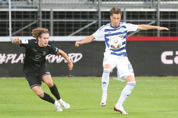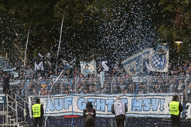 Dabei hätte man Hoffnung haben können im Vorfeld durch zwei Querverweise. Der nach seiner blödsinnigen Schiedsrichter-Beleleidigung noch für die folgenden zwei Partien gesperrte jüngste Zugang Ekin Celebi gewann – wennglich ohne Einsatz – letzte Saison den Niederrhein-Landespokal mit Rot-Weiß Essen durch den 2:1-Finalsieg im Duisburger Stadion vor 27.719 Zuschauern. Und MSV-Geschäftsführer Michael Preetz erinnerte sich ungern an seinen ersten Besuch im Schweinfurter Sachs-Stadion: Im Frühjahr 1991 verlor er als junger Stürmer mit dem 1. FC Saarbrücken die Zweitliga-Partie mit 1:2. Matthias Baranowski und Joachim Reuß trafen damals für den FC 05. Lange ist´s her…