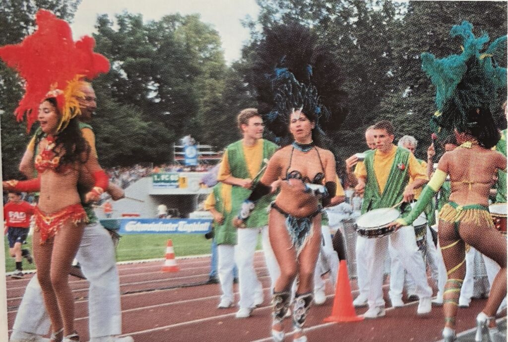 Unsere vier Bilder zeigen als Aufmacher den Saarbrückener Faysal El-Idrissi gegen Yu Shimamura vom FC 05 im November 2003. Und dann eine Szene mit Nino Miotke (Saarbrücken) und Stefan Maderer (FC 05), als im Sommer 2019 die Gäste ein Vorbereitungsspiel in Schweinfurt mit 2:1 gewannen. Auf den beiden anderen Fotos: Eine Tanzgruppe beim Spiel 2001, als der FC 05 mit 2:1 siegte und der Ansturm an den Kassen riesengroß war.