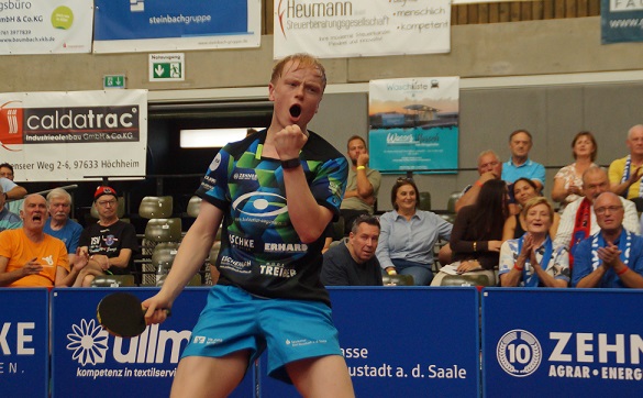Das spannendste, weil ausgeglichenste und vermutlich beste Spiel war das zweite Einzel zwischen dem Europameister Dang Qiu und dem TSV-Youngster Andre Bertelsmeier (19). Der schien im ersten Satz zum ersten Mal bei seinem neuen Verein eine Abfuhr beziehen zu müssen, verlor ihn mit 4:11. Was seine Leistung umso mehr aufwertete, war die Art und Weise, wie er diese Beinahe-Demütigung weg steckte, sich selber aus dem Sumpf zog und die nächsten zwei Sätze (11:5/11:6) für sich entschied. Im vierten und fünften Durchgang musste er aber doch seiner Jugend Tribut zollen. Es gab somit keine Sensation, sehr wohl aber jede Menge sensationeller Ballwechsel, wozu gewöhnlich zwei überragende Spieler gehören.