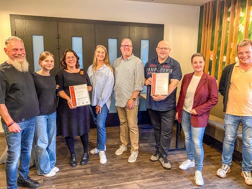 - Michael, Emma und Svenja Glas (Restaurant Kneshecke), Karin Schanne, Michel van Goethem (Hessen a la Carte), Stefan Faulstich (Landhotel Rhönblick), Claudia Brandes (BGM Petersberg), Thomas König (Rhön GmbH); Foto: Rhön GmbH