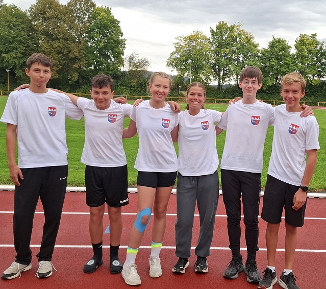 Mit Bestleistungen weit vorne platzierten sich Jan im Diskuswurf (30,17 m) und über 80m Hürden (12,80 sec) sowie Samuel im Speerwurf (33,79 m). Viele Punkte in die Mannschaft brachten auch Greta über 80m Hürden (13,37 sec), Jana im Diskuswurf (21,90 m) und Simon im 800m-Lauf (2:21,49 min) ein. Mit weiteren schönen Leistungen trugen Greta (Staffel und 800m), Jana (Kugel) und Max (Kugel) dazu bei, dass Team Unterfranken wie im Vorjahr die Bronzemedaille gewann – mit nur 1,5 Punkten Rückstand auf Platz zwei.