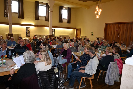 GOCHSHEIM – Über 80 Gäste besuchten das Wirtshaussingen im Katholischen Pfarrsaal, zu dem der Seniorenbeirat und die Gemeinde Gochsheim eingeladen hatten.