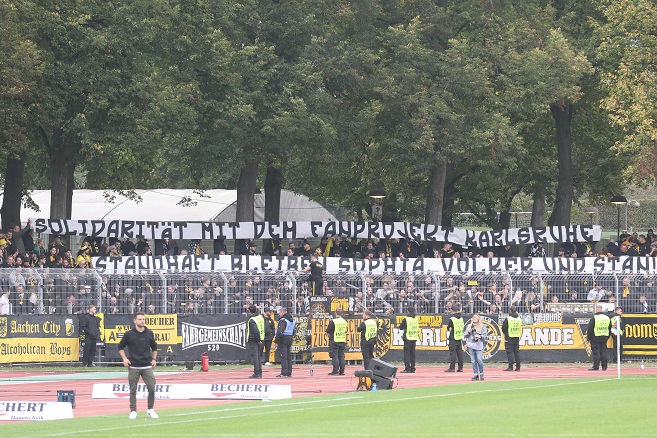 Die Zuschauerzahl mit diesmal unter 5000 (offiziell 4.967, obwohl rund 1000 Aachener da waren) zeigte schon, dass die Euphorie bereits verblasst ist. Wie schon zuvor bei den Partien gegen Cottbus, Düsseldorf, Wiesbaden und Duisburg jubelten danach nur die Gäste und die Schweinfurter schlichen bedröppelt in die Kabine. Wird das so weiter gehen nächsten Samstag gegen Verl? Und wieviele Zuschauer kommen da zum Ende der Englischen Woche für den Fall einer weiteren Niederlage am Mittwoch bei Zweitliga-Absteiger SSV Ulm? Wieviele kommen noch, wenn es im November gegen Hoffenheim 2 geht und im Dezember gegen Havelse?