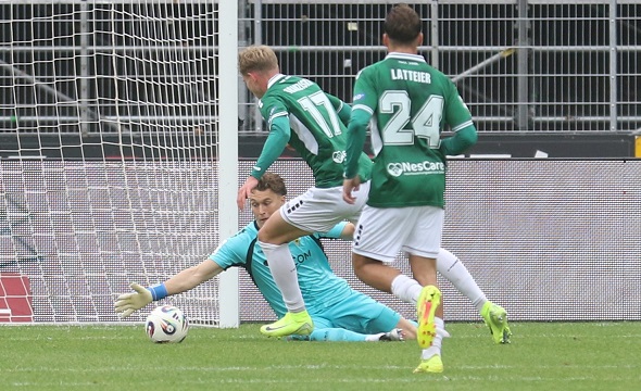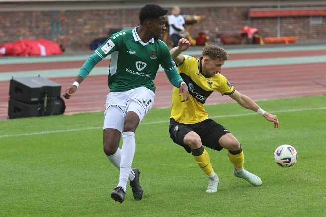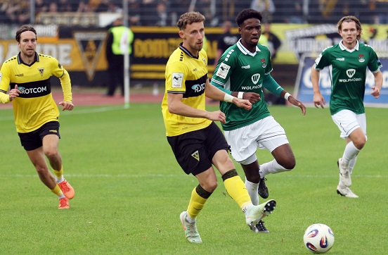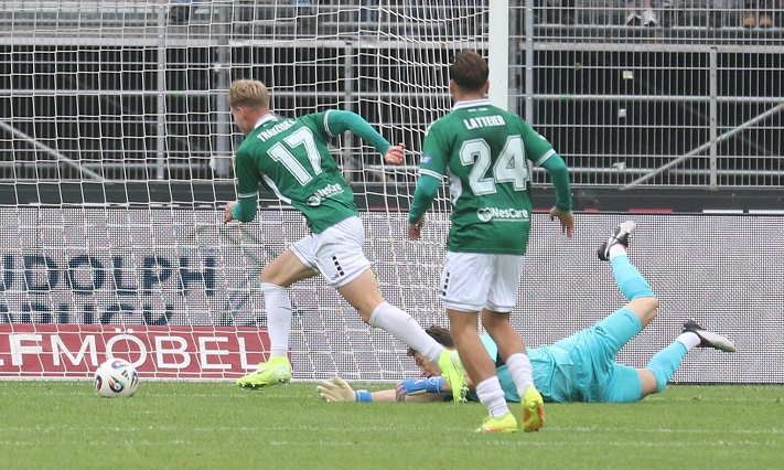 Die Bilder dieser Führung und vom ersten Punktsspiel-Heimtor sind letztlich wertlos, auch wenn der Jubel groß war. Was wäre gewesen, wenn…? Das ist die nächste Frage. Wenn Uche Obiogumu nach seinem Solo in der 27. Minute nicht an der Latte gescheitert wäre. Das 2:0 war mehr als möglich, wenngleich es nicht verdient gewesen wäre. Aber es sah gut aus…