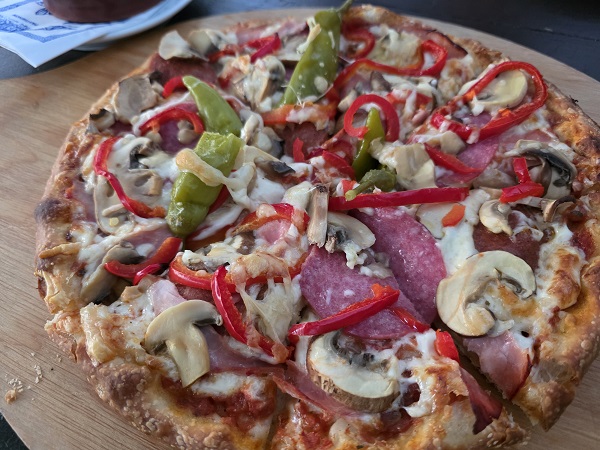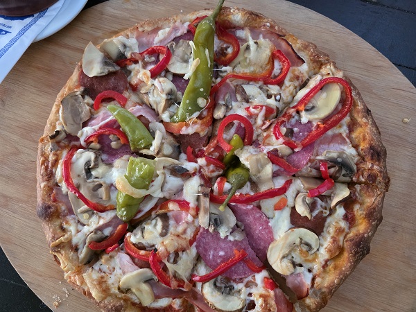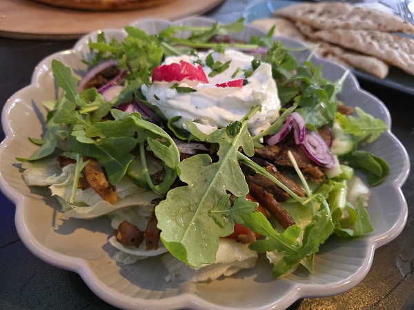 Diesmal gab´s zu ein paar sehr süffigen und gehaltvollen Lagerbieren der heimischen Brauerei Roth zwei Speisen, für die sich die beiden Schonunger zuvor noch nie entschieden hatten. Einerseits die Pizza Spezial, die mit eigentlich fast allem belegt ist, was gut schmeckt. Und andererseits den Gyros-Salat mit sogar Tzatziki und Fladenbrot. Klar, dass danach auch noch der Ouzo mundeste…