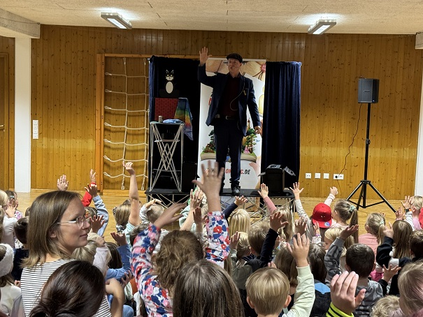 Bis in den späten Nachmittag gab es ein buntes Programm: eine Ausstellung zur Geschichte der Bibliothek, einen Luftballonwettbewerb für Kinder und ein Bibliotheksquiz für Erwachsene sowie eine Tombola. Programmhighlight war der Auftritt des Zauberkünstlers Mr. Flo, der zunächst in der Bibliothek die Gäste mit seinen Zaubertricks sowie im Anschluss Klein und Groß im vollbesetzten Bürgersaal mit einer magischen Show begeisterte.