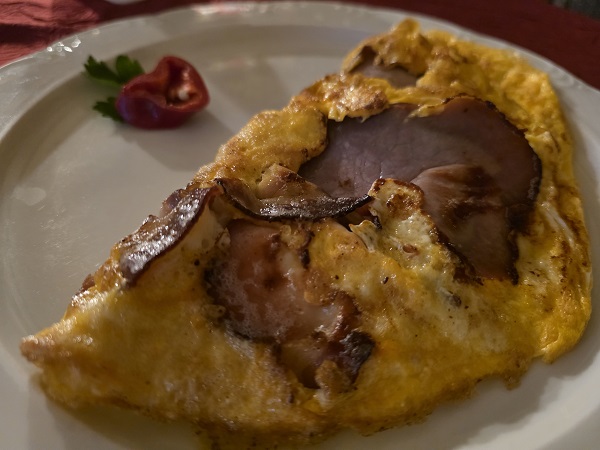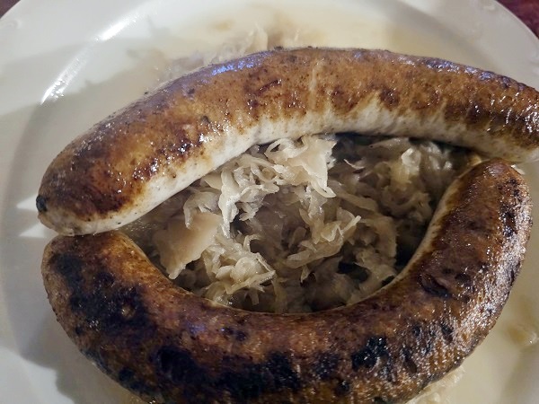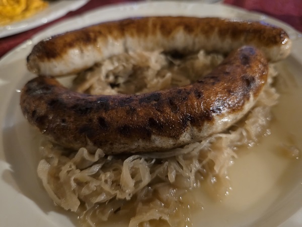 Zu einem Kellerbier der Weismainer Brauerei und einem Mineralwasser für die Fahrerin entschieden sich die beiden Schonunger einmal klassisch für die Bratwürste mit Kraut und Brot und dann für das Omlette mit Schinken und ebenfalls einer frischen Brotscheibe. Sowas geht immer, auch wenn beim nächsten Mal bestimmt ein Schnitzel auf die Teller kommt.