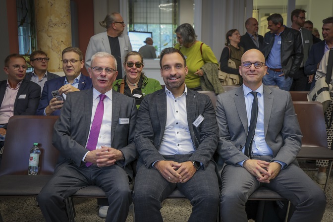 Bad Kissingens Oberbürgermeister Dr. Dirk Vogel (rechts), Bad Neustadts Bürgermeister Michael Werner (Mitte) und Gotthard Schlereth, stellvertretender Landrat von Bad Kissingen (links), beim Netzwerktreffen des Doppeloberzentrums Bad Kissingen/Bad Neustadt a. d. Saale.