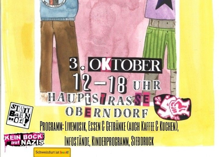 „Wir freuen uns auf alle, die keinen Bock mehr auf den Rechtsruck in allen gesellschaftlichen und politischen Bereichen haben. Damit wollen wir ein deutliches Zeichen gegen die Verharmlosung von Faschismus und Sexismus im Alltag setzen“, schreibt Schweinfurt ist bunt als Veranstalter.