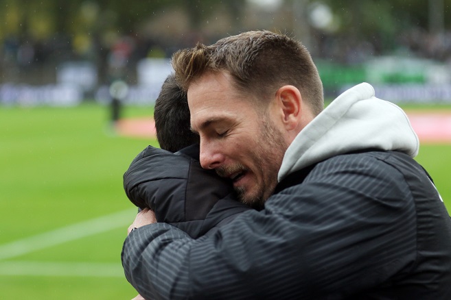 Sprach´s – und erntete beim Pressegespräch Zustimmung seines Gegenübers. Von Tobias Strobl. seinem guten Freund, der den Auftritt des FC 05 eigentlich nur loben konnte. „Angepisst“ war er zur Pause, „weil es da nur mit Glück nicht 3:0 steht. Und wenn der Ball dann zum 2:0 rein und nicht an den Pfosten geht…“ Richtig freuen konnte sich Strobl nicht, trotz anstehendem Kurzurlaub in der Heimat in Ingolstadt. Weil eben sein Freund traurig war, weil ihm seine Zeit in Schweinfurt, auch wenn sie aprupt und irgendwie unnötig endete, zu gut gefiel. „Außerdem war das beim FC 05 ja kein geplanter Aufstieg!“ So wie damals unter seiner Regie, als es nicht klappte. Die 3. Liga sei nun halt nicht mehr die Regionalliga. Und immer wieder 50:50-Spiele hätten die Schnüdel halt nicht auf ihre Seite ziehen können. Bislang.