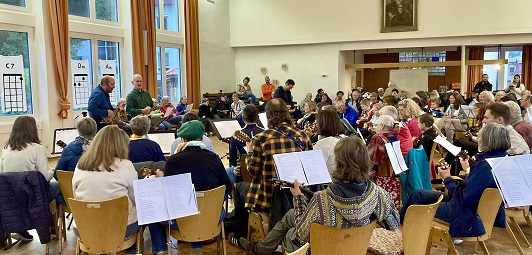 „Ukulelen unter uns“: Am Ukulelen-Flashmob in Bad Brückenau beteiligten sich rund 55 Musikerinnen und Musiker.
