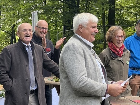 Knetzgaus Bürgermeister Paulus und Oberaurachs 2. Bürgermeister Albert luden in ihren Grußworten zum bewussten Naturerlebnis ein – die Ruhe und Natur des Steigerwalds als Gegenpol zu Touristenmassen in Bamberg oder Würzburg.