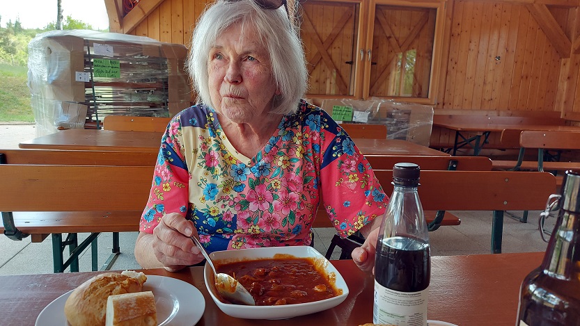 Belohnt wird man mit einem schönen Angebot an Speisen und Getränken. Natürlich gibt´s Kaffee und Kuchen, aber auch die guten Keiler-Biere. Und auch immer ein warmes Essen, diesmal Spießbraten im Weck und einen Fleischtopf mit Brötchen. Das war lecker!