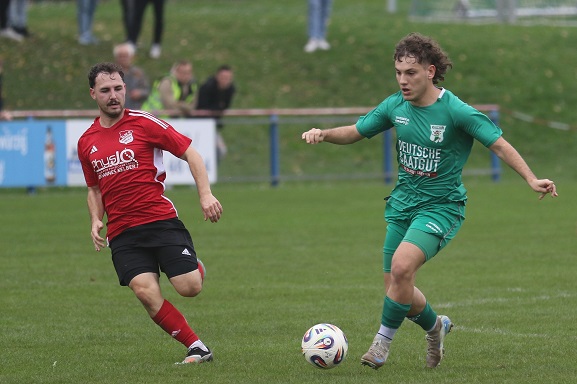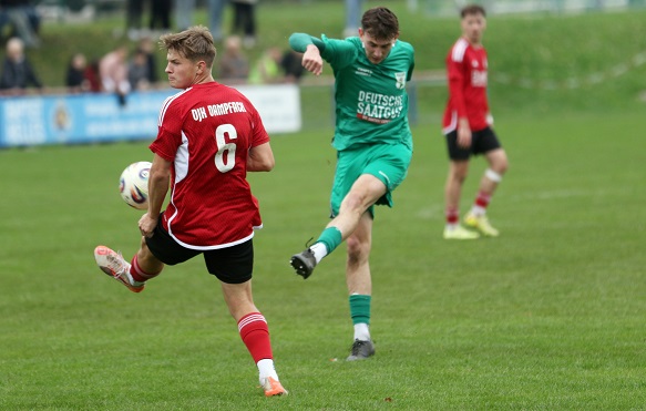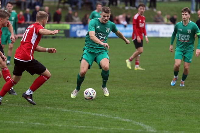 Die Gäste kamen mit viel Wut im Bauch und Entschlossenheit aus der Kabine. Sie bestimmten jetzt eindeutig das Geschehen und drängten die DJK immer mehr in die eigene Hälfte. Noah Mack hielt durch ein paar Glanzparaden die Null. Nach einer Stunde war es dann aber soweit. Mika Manninger erzielt aus gut 20 Meter mit einem Sonntagschuss in den linken Winkel den Ausgleich.