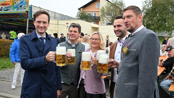 Irgendwann kam der Zug am Festplatz vor der Kita Storchennest an, wo die Prominenz und die zahlreichen anderen Gäste miterleben durften, wie Bürgermeister Jens Machnow mit Assistenz durch Gemeinderat Martin Saalmüller das erste Bierfass anzapfte. Ein Hoch auf alle Mitgezogenen, besonders auf die Fichtenburschen und deren Eltern, die vielen Tänzerinnen und Tänzer, das Erzieherteam der Kita Storchennest, die Kapelle Mauder und die Betreiber der Fahr- und Schaugeschäfte, die für ein buntes Treiben sorgten. Kaffee und Kuchen gab es in der Kita, Speisen und Getränke waren am Festzelt im Angebot.