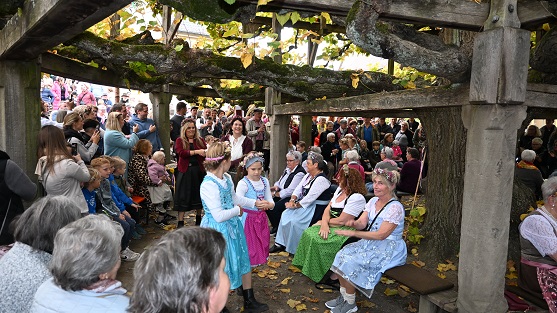 Ein XXL-Aufenthalt folgte an der historischen Stufenlinde vor der Pfarrkirche St. Peter und Paul. Erst stellten die Fichtenburschen die beiden Kirchweihfichten auf, dann tanzten mehrere Gruppen unterschiedlicher Generationen unter der Linde. Außenstehende hörten zwar die Kapelle, aber zu sehen bekam man wenig, da sich viele Schaulustige direkt um die Linde platziert hatten und die meisten ihr Handy im Einsatz hatten.