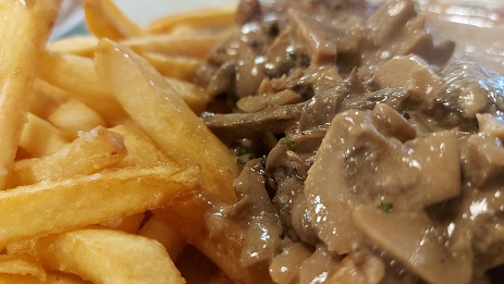 … das Jägerschnitzel mit den Pommes Frites hier eben besonders gut schmeckt und das Brauergulasch mit Semmelknödeln auf der Tagestafel Pflicht ist, wenn es das schon mal gibt. Der dazu gehörende Beilagensalat würde andere Gäste wohl alleine schon satt machen. Und, ach ja: Lecker war´s!