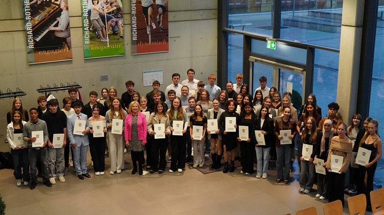 Auf dem Bild: Die besten Absolventinnen und Absolventen der Abschlussjahrgänge nach der Ehrung