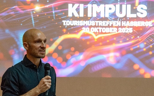 Zentrales Highlight des Abends war der Impulsvortrag von Rainer Rother, Director Innovation & KI bei der marcapo GmbH. Mit konkreten Praxisbeispielen zeigte er auf, wie Künstliche Intelligenz im Tourismus effektiv genutzt werden kann. Dabei stellte Herr Rother eine Auswahl innovativer KI-Tools wie ChatGPT, Perplexity oder Midjourney vor und demonstrierte deren Potenziale live im Einsatz. Anhand konkreter Beispiele – etwa mit Texten und Bildern von den Websites der Teilnehmenden – zeigte er, wie diese Inhalte mithilfe von KI optimiert oder kreativ weiterentwickelt werden können.