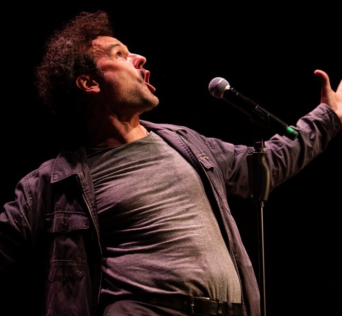 Dieser Weg begann übrigens auch in Schweinfurt, wo er seinen 23. Auftritt hatte – inzwischen sind es weit über 200. Als Barde: reisender Poet und Sänger, Reimemacher, Liedermacher, Spaßmacher, ist er von den deutschsprachigen Bühnen nicht mehr wegzudenken. Weil ihm musikalische Instrumente beim Slam verboten sind, verleiht er seinem kreativen Sprachwitz seinen Körper als theatralisches Performanceinstument, mit ausgeprägter Leidenschaft, oft witzig, manchmal ernst; mal prosaisch, mal lyrisch; aber vor allem: immer voller Energie.