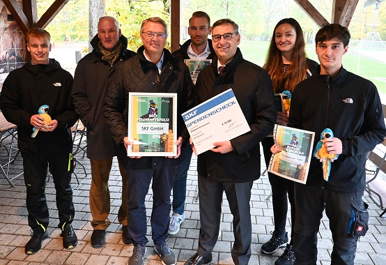 SCHWEINFURT – Mit einer Sonderspende von 10.000 Euro unterstützt SKF den Bau von Beopolis, der Stadt der Vögel im Schweinfurter Wildpark. SKF-Deutschlandchef Jörg Wuttke übergab den symbolischen Scheck zusammen mit Auszubildenden und Führungspersonal der SKF-Ausbildungswerkstatt an die Verantwortlichen der Stadt.