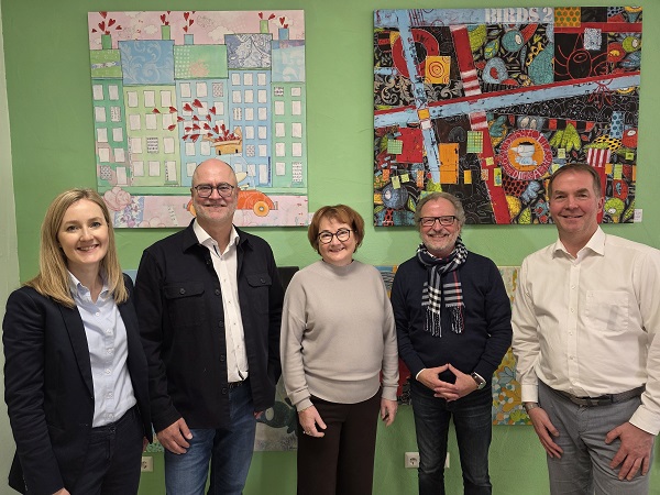 Auf dem Bild mit den fünf Personen von links: Amelie Witt, Helmut Witt, Ulrike Witt, Walter Steinbeck und Stefan Beck vom Pressebüro www.pressebeck.de, der das Haus der Pflege in Sickershausen und den Künstler zusammen brachte.