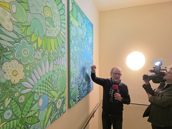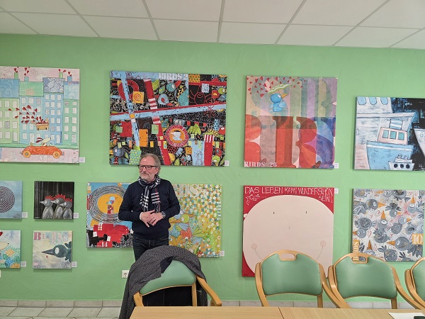 Walter Steinbeck malt und zeichnet seit über 50 Jahren. Vielen Menschen ist seine Kunst bereits begegnet, oft ohne es bewusst zu wissen – etwa durch die bekannten Schokoladen und Gummibärchen mit lustigen Zeichnungen und aufmunternden Sprüchen (www.shop.steinbeckwelt.de/). Seit 2020 liegt Steinbecks Fokus auf großformatigen Bildern in Acryl auf Leinwand. Entstanden ist dabei die Serie Birds, Vögel, die im Haus der Pflege zu sehen sein wird (www.steinbeck.art/). Steinbecks Philosophie ist einfach: Kunst soll Freude machen und unbeschwert sein. „Walter Steinbecks Werke passen damit perfekt zum Haus der Pflege. Denn die Bilder strahlen Lebensfreude, Zuversicht und Leichtigkeit aus“, sagt Einrichtungsleitung Helmut Witt.