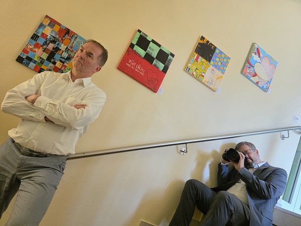 Und das sind „super farbenfrohe, bunte und fröhliche Bilder“, wie es Amelie Witt ausdrückt. „Und wir sind ein offenes und nicht abgeschlossenes Haus, ein Ort der Begegnung.“ Ihr Vater Helmut lobt das „helle, freundliche Farbkonzept“ der Ausstellung, betont natürlich auch, dass sein Haus, das sich auf an Demenz Erkrankte spezialisiert hat, natürlich einen geschützten Bereich brauche.