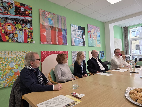 Menschen mit Demenz würden emotional reagieren, wenn sie solche bunten Bilder sehen, weiß Helmut Witt. Der aus dem Alltag des Heims plauderte, in dem man homogene Strukturen für die Bewohner schaffen möchte. Beispielsweise kann es in einem normalen Pflegeheim belastend wirken, wenn jemand mittags mit den Fingern ist, weil er vergessen hat, dass es Besteck gibt. „Wenn das aber alle so machen, dann stört sich keiner mehr am anderen“.