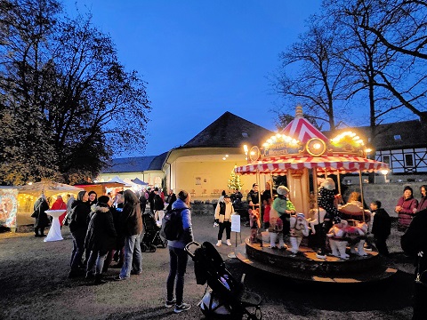 Der Winter-Schlossmarkt im Schlosshotel und im Schlosspark zog auf der anderen Seite der Saale mit Eröffnung am Freitag ab 15 Uhr die Menschenmassen an. Der Andrang hielt danach an, leider ist schon um 20 Uhr wieder Schluss.
