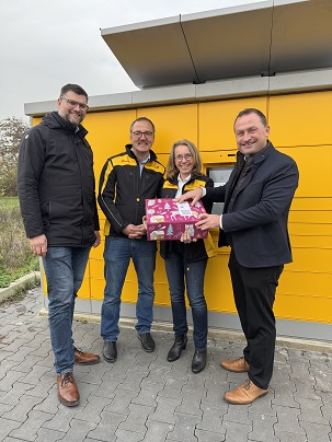 Gemeinsam mit Geschäftsleiter Stephan Renninger und Bauamtsleiter Michael Lommel Bürgermeister Christian Keller, die Poststation bereits ausführlich getestet. Zur Erprobung wurden zwei Überraschungspakete an die beiden Kindergärten der Gemeinde verschickt – ein praktischer Probelauf, der reibungslos funktioniert hat.